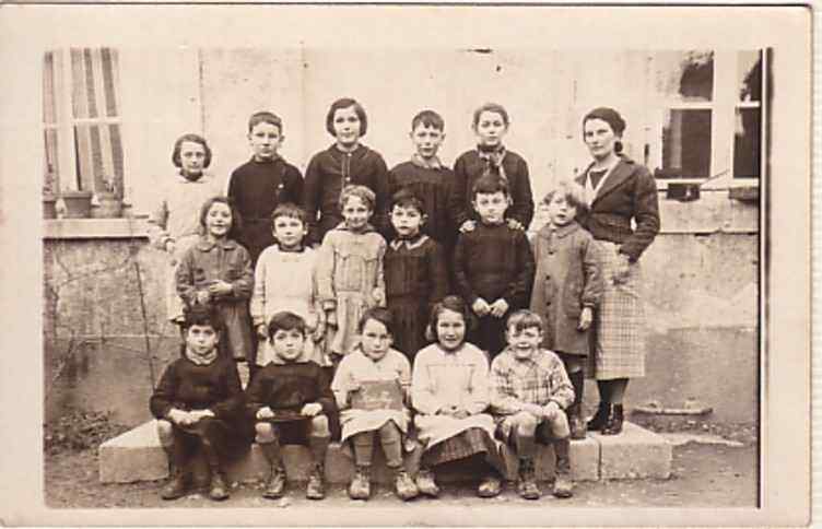 Classe 1938 ou 1939: 16 Elèves: Rang haut: Voyot, Paul Mithouard ,Georgette Berard ,Daniel Soisson , Janine Baudoin , Milieu: Thérèse Michault, Bernard Mithouard ,Voyot ,Michel Collin , Claude Collin ,J Maréchal , L''Institutrice: Mme Chereau Rang du Bas: Albert Lardin, Jacques Lardin ,Pierre Mithouard ,Janine Mithouard, Emile Maréchal