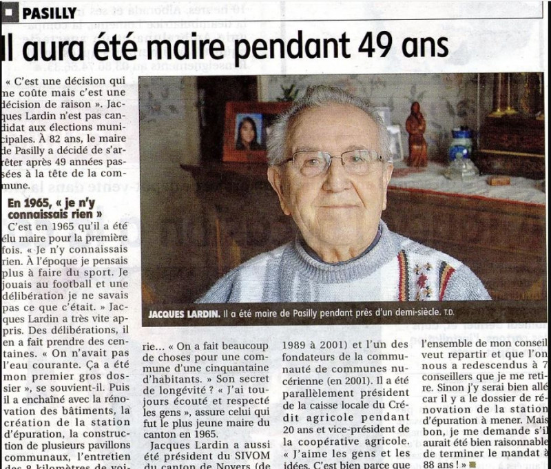 Merci Jacques pour ces 49 années passées au service de tes administrés et ton village. Famille AUBRY Alain