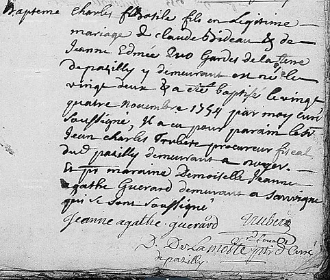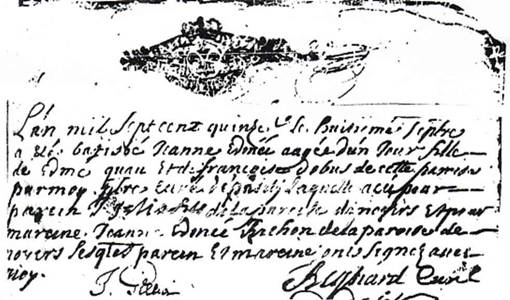 Acte de Baptême de Mon Aïeule ( Maternel ) Jeanne Edmée QUAU daté du 8 Septembre 1715 décédera le 7 janvier 1793 à Pasilly.